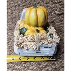 Drive into the fall season with this adorable truck filled with pumpkins. Display alone or pair with other decorative elements to create a unique table display. This truck will be the perfect addition to your Thanksgiving or Autumn decor.