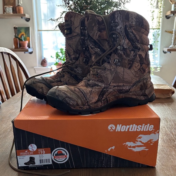 Durable Northside boots with a rugged camouflage design. Ideal for outdoor activities.only worn one hunting season. Still in a great shape and comes with box.