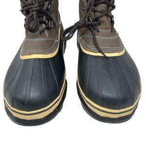 Duck boot design that keeps feet dry, warm, and comfortable. Waterproof construction ensures dry feet, while the boots' gusseted tongues help keep snow and debris out. Inside, removable, quick-drying, 8mm felt linings. Sturdy rubber outsoles feature a cleated tread design to deliver exceptional traction and extra shock absorption in snowy or icy conditions. D-ring quick lacing system. Heel pull straps.