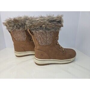 Northside Womens Snow Boot Size 6 Light Brown Gray Faux Fur Trim Lace Up NWOT
