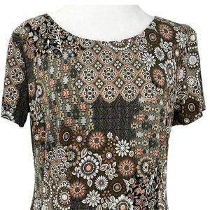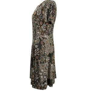 Northstyle Brown Multicolored Fit and Flare Short Sleeve Floral Dress Size 6