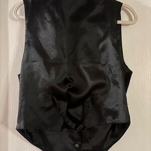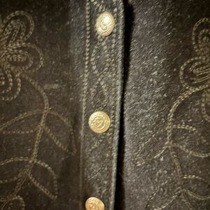 Elegant black vest with detailed embroidery. Perfect for layering. Suedes