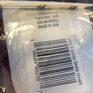 Features college team logo on a solid background on one side; team slogan or saying on other side