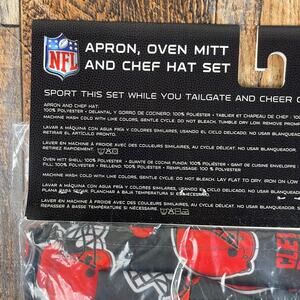 The item you are looking at is a NWT Northwest NFL 3 Piece Team Color and Logo Chef Set: Apron, Oven Mitt & Chef Hat