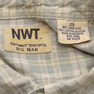 Northwest Territory Shirt Mens 2XL Plaid Short Sleeve Button Down Linen Cotton