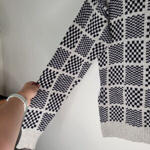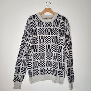 Northwest Territory Black and White Patterned Crewneck Sweater M Cotton Vintage