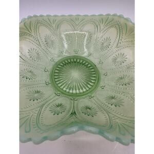 Northwood Spokes and Wheels Green Opalescent Novelty Bowl