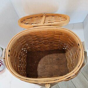 Northwood Woven Creel Fishing Basket Wildlife Print Hinged Lid, Adjustable Strap
