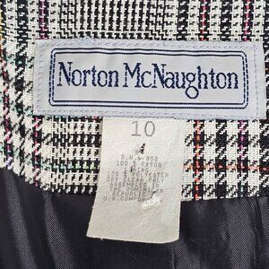 Vintage Norton Mc Naughton plaid blazer jacket for women, size 10. It features a single button closure with faux pockets, adding a classic touch to any outfit.