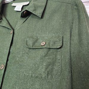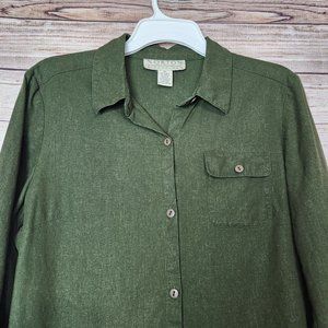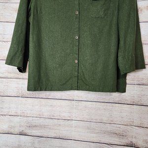 Norton McNaughton Button Up Shirt Women's Size 12 Green 3/4 Sleeve Linen Blend