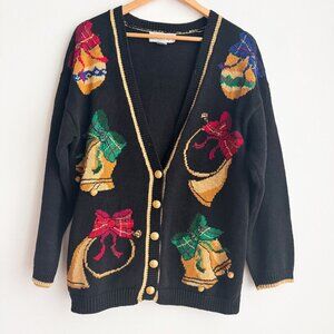 Norton McNaughton Christmas Bells Colourful Ramie Cotton Blend Cardigan M