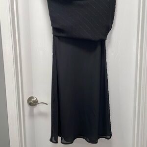 Norton McNaughton Dress Sleeveless Silver Pin Stripes Wavy Hem