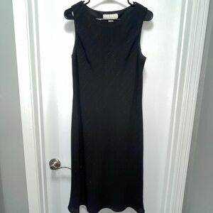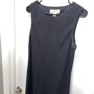 Norton McNaughton Dress Sleeveless Metallic Pin Stripes Crewneck Wavy Hem Sheath