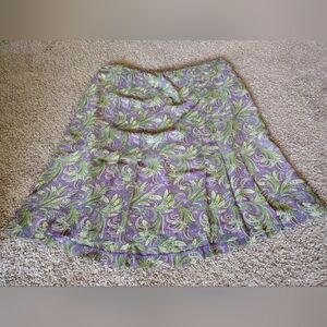 Norton McNaughton, Women's siE 18W. Elevate your wardrobe with this stylish floral patterned flair skirt. Featuring a vibrant green and purple design, this skirt is perfect for any occasion. Measurements included, All questions welcome!