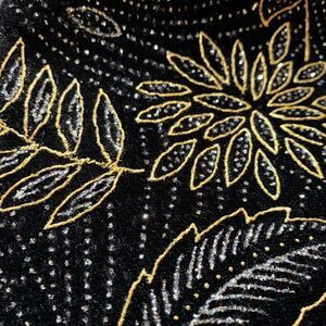 Features: Velvet Black Gold Floral Glitter Embellishment Lined Floral Glitter Embellishment Lined Holiday Season Brocade Floral Made in U.S.A. Dry Clean