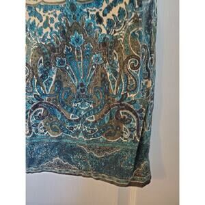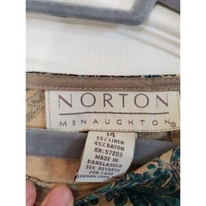 Norton McNaughton Linen Blend Paisley 90s Khaki Blue Maxi Skirt, Size 14