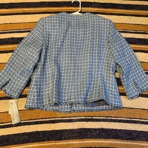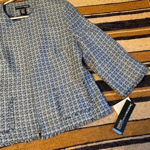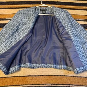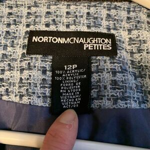 Norton McNaughton Petites Blazer Jacket Chenille Tweed Blue Size 12P Preppy Twee