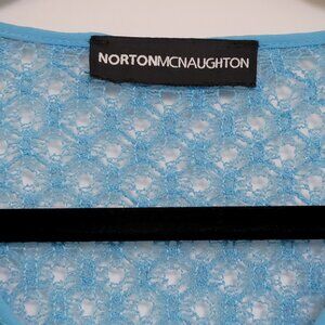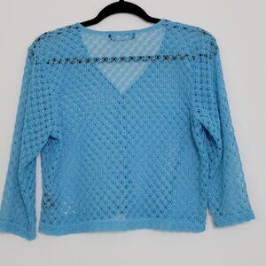 Norton McNaughton Pool Blue 3/4 Sleeve Crochet Knit Cropped Cardigan Size Medium