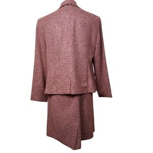 Norton McNaughton VTG 2PC Pink Blue Tweed Fringe Skirt Suit 14 DR0018
