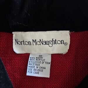 Norton McNaughton Vintage Red Cardigan Sweater with Black Velvet Trim