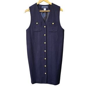 Norton McNaughton Vtg 90s Preppy Academia Wool Button-Up Mini Dress 8P Navy Gold