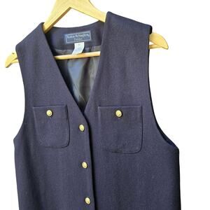 Norton McNaughton Vintage 90s Preppy Academia Wool Button-Up Mini Dress 8P Navy Gold