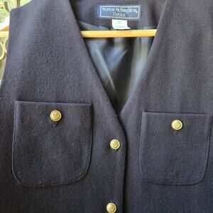 Vintage Wool Dress, 90s Career Dress, Sleeveless Shift Dress, Petite Navy Dress, Classic Midi Dress, Office Wear Dress, Gold Button Dress, Structured Wool Dress, Norton McNaughton Vintage