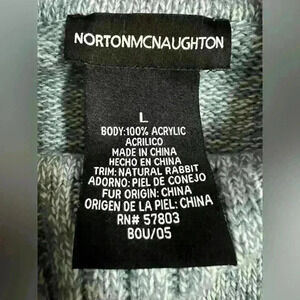 Norton McNaughton Women’s Large Heathered Blue Split Turtleneck Fur Trim Sweater
