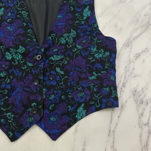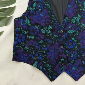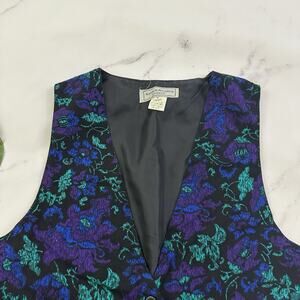 Norton McNaughton women's vintage 90s jewel tone purple floral vest, size 8 petite. It is free from any rips or stains. It measures about 34 inches around the bust and is about 20 inches long.