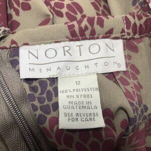 Norton Mcnaughton Skirt. Size 12. The label pic seems to be the best for color. 18" Vent. Zip Back. Unlined. Silky. Length 36". Waist 30" with back elastic. Excellent pre-loved condition. No spots, tears or damage.