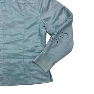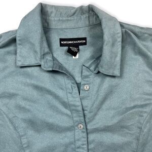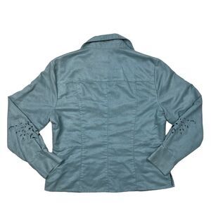 Norton Mcnaughton Light Blue Faux Suede Button Up Eyelet Detail Button Up Shirt