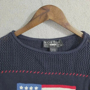 Norton Studio PM American Flag Sweater Navy Ramie Cotton Womens PM 9PT