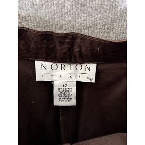 Norton Studio Wide Straight Leg Corduroy Pants Womens Size 12 Stretch Brown Pockets