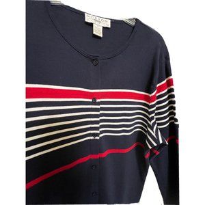 Norton Studio Women Cotton Sweater Cardigan Size 1X Red Black Stripes