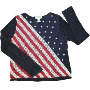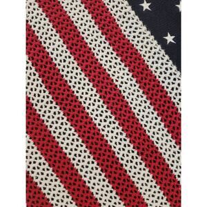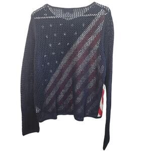 This is a gorgeous womens open knit crochet style patriotic pullover sweater in excellent condition!