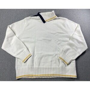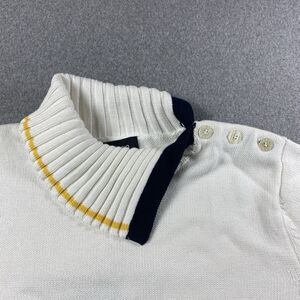 The Norton Studio Women Nautical Anchor Sweater Turtleneck in size L is a stylish and comfortable pullover sweater perfect for any nautical-themed outfit. Made from 100% cotton, this ivory sweater features a turtleneck neckline and a convenient pocket detail. The classic anchor design adds a touch of maritime flair to your wardrobe, making it a versatile and fashionable choice for any woman's closet.