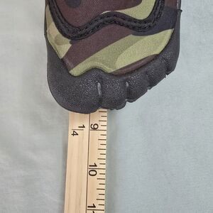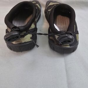 New kids water shoes, "barefoot" style. Size 1, camo greens with black sole. Cord lock spring clasps at heel.