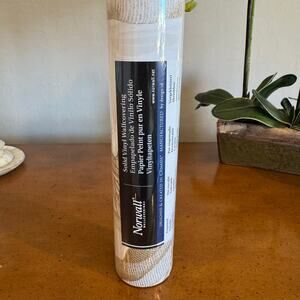One roll sealed Norwall “Polynesian Leaves” solid vinyl wallpaper rolls (Tan/Beige, Pattern MH36536). Each double roll is prepasted, peelable, washable, and covers 56 sq ft. Beautiful tropical palm design in neutral tones—adds serene warmth to any room. Brand new and still factory wrapped.