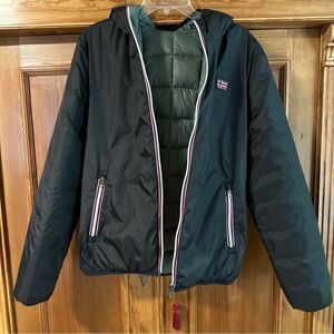 Norway 1963 Men's Black / army gree reversible puffer Jacket Hood Sz M