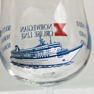 Norwegian Cruise Line Glass Goblet Water Wine Clear Blue Red Stemware Vintage