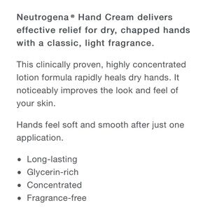 Norwegian Formula® Hand Cream Neutrogena 2 oz Neutrogena® Hand Cream delivers effective relief for dry, chapped hands with a classic, light fragrance.