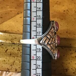 This pretty ring is made with 3.15 ctw of genuine Thulite gemstone that was mined in Norway. The ring is set in solid .925 sterling silver with a black oxidized finish. The ring in the photos is the actual one you will receive, so please see photos for gemstone quality and measurements. Size 8.