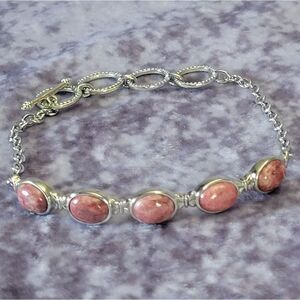 Norwegian Thulite Toggle Clasp Bracelet in Stainless Steel, (6.5 - 8.0 in) 11.00 ctw