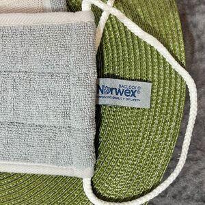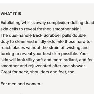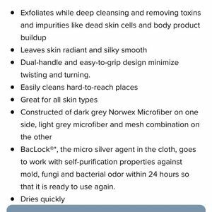 Soft and effective exfoliating mitt. Ideal for skincare routine. Easy to use with handles.