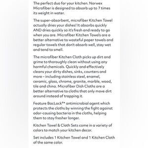 Norwex Kitchen Towel and Kitchen Cloth set of 2 Pomegranate NWT ◦ Includes the kitchen towel 25.59” x 13.78” and kitchen cloth 13.78” x 10.24” ◦ Pomegranate ◦ New - never used ◦ Bundle and save ◦ Fast shipping normally 1 day See pictures for details. Smoke free and pet free shop Thanks for shopping in my closet