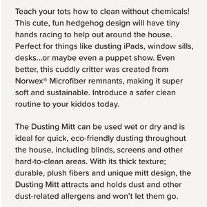 Norwex Kids Hedgehog Dusting Mitt Limited Edition NWOT