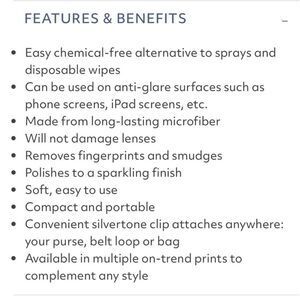 Norwex Pewter Optic Scarf NWT ◦ Color - pewter ◦ Use in cleaning glasses, screens, lenses, jewelry, glass surfaces etc ◦ New - never used ◦ Bundle and save ◦ Fast shipping normally 1 day See pictures for details. Smoke free and pet free shop Thanks for shopping in my closet ◦ cloth, microfiber, BacLock, glasses, lens, optic, scarf, cleaner