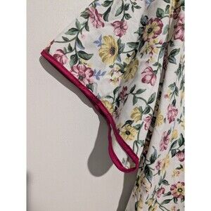 Off white with screen print floral design . Edging is done in hot pink Satin . 60/40 Cotton/ poly blend .