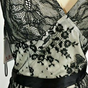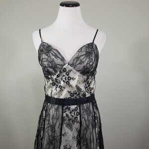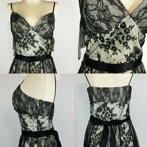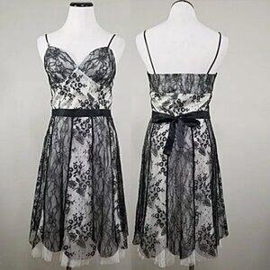 Nos Vintage ABS Allen Schwartz Black White Lace Dress 6 Dark Coquette Whimsigoth