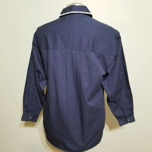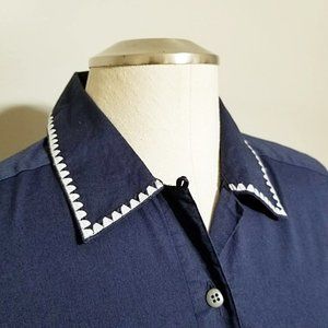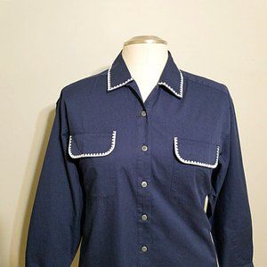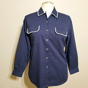 Nos Vintage Eddie Bauer Blue White Accent Loop Collar Blouse Shirt M Cottagecore